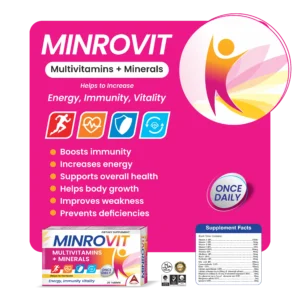 Minrovit Tablet is a complete multivitamin and minerals supplement designed to support daily energy, immunity, and overall health for men and women. Trusted in Pakistan for daily nutritional support.